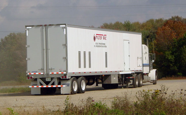 The ECoil Transformer Oil Regeneration Plant is controlled by a programmable logic controller (PLC). The system is monitored by a computerized supervisory system. This system monitors and records all vital operating parameters. All ECoil Mobile Systems come equipped with an operator control room. The Ecoil System is housed in either a Semi-Trailer (Option ‘T’ – Varied Length available) or in 20 and 40ft sea freight containers (Option 20 or 40). In addition, FilterVac can supply a full line of oil testing equipment to provide the operator with an on-board oil testing facility.